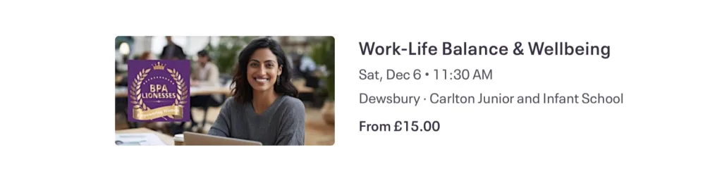 The ‘Work Life Balance and Wellbeing’ session on Saturday 6th December has a clear focus on four core themes: perimenopause and menopause, burnout and stress, setting healthy boundaries, and simple daily habits that support a calmer and happier life.
